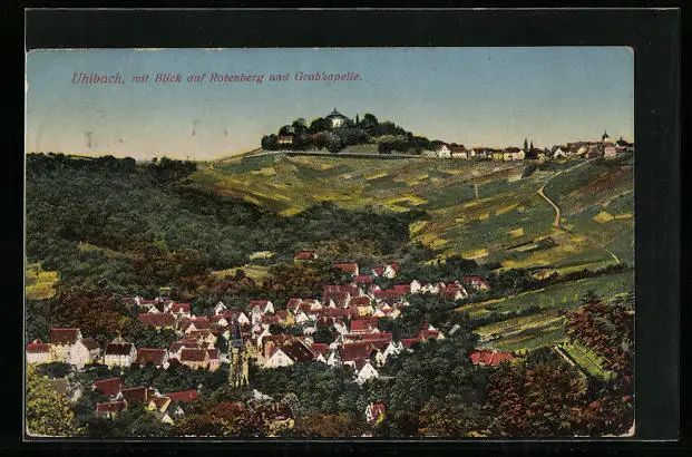 AK Uhlbach, Teilansicht mit Blick auf Rotenberg und Grabkapelle