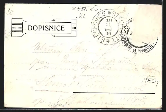 alte Ansichtskarte, gelaufen 1906, Briefmarke entfernt, rückseitig Oberflächenschaden, guter Zustand