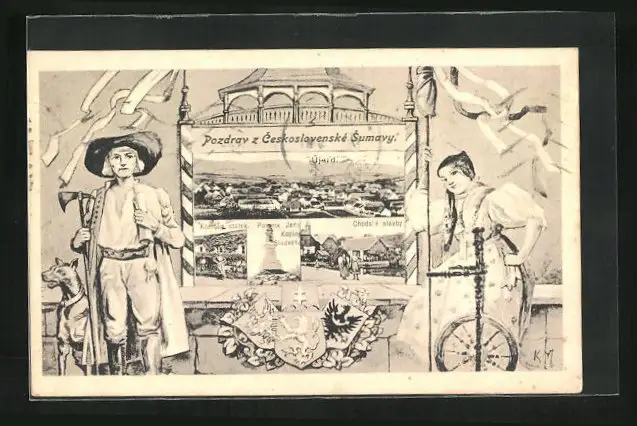 AK Ujezd, Kozinuv statek, Pomnik Jana Koziny Sladkeho, Chodske e stavby