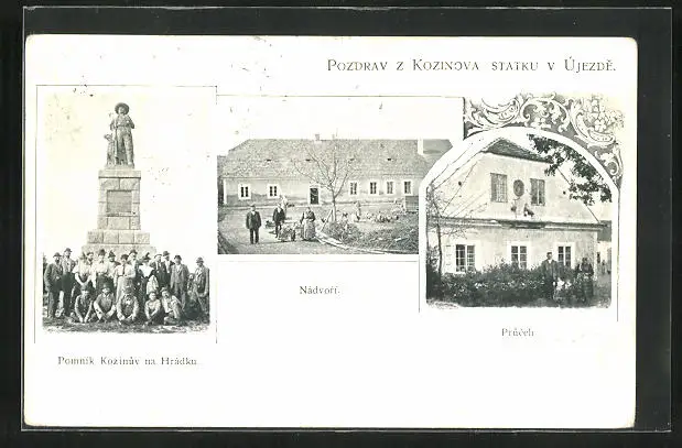 AK Ujezd, Nádvorí, Prucelí, Pomní Kozinuv na Hrádku
