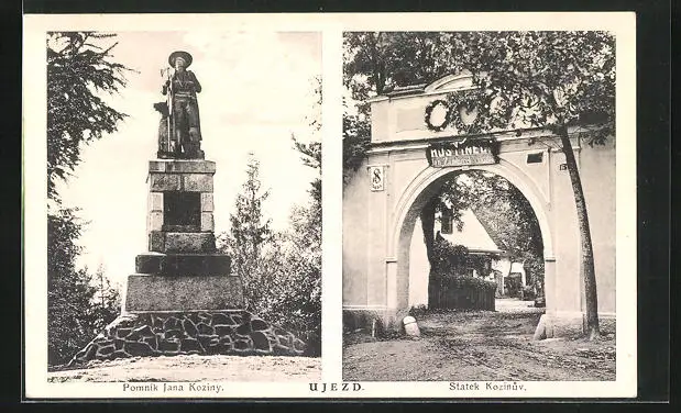 AK Ujezd, Pomnik Jana Koziny, Statek Kozinuv