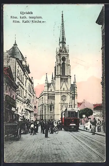 AK Ujvidék, Röm. kath. Kirche, Strassenbahn