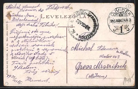gelaufen 1915, Stecknadelloch oben mittig, guter Zustand