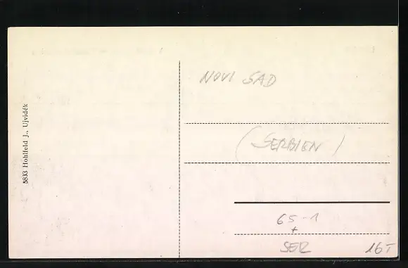 Personenbezogene Daten auf der Rückseite der Karte wurden durch blauen Textmarker unkenntlich gemacht. Die blauen Stellen sind auf die Vorderseite durchgeweicht und wirken sich negativ auf das Postkartenfoto aus