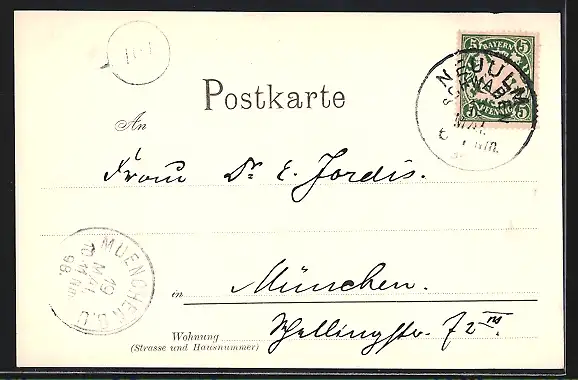 alte Ansichtskarte, gelaufen 1898, Stempelspur, guter Zustand