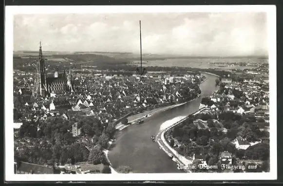AK Ulm / Donau, Flugzeugaufnahme der Stadt
