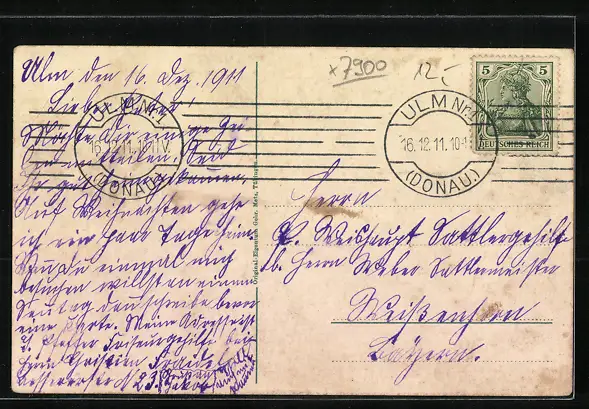 gelaufen 1911, Stempelspur, Eckknick li. oben, Bugspur re. mittig, guter Zustand