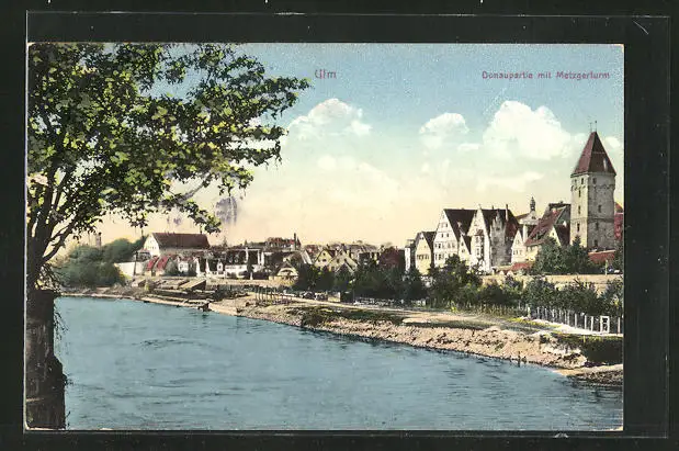 AK Ulm, Donaupartie mit Metzgerturm