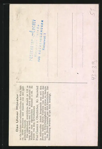 AK Ulm, Modell des Münsters, Portrait des Erbauers, Modellbau