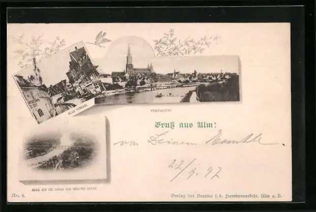AK Ulm, Ortspartie, Blau Venedig, Donau mit Brücke