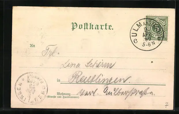 alte Ansichtskarte, gelaufen 1899, guter Zustand
