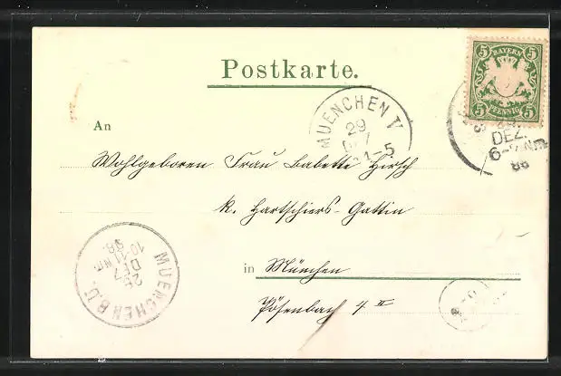 alte Ansichtskarte, gelaufen 1898, Stempelspur, guter Zustand