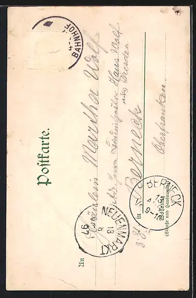alte Ansichtskarte, gelaufen 1897, Briefmarke entfernt, guter Zustand