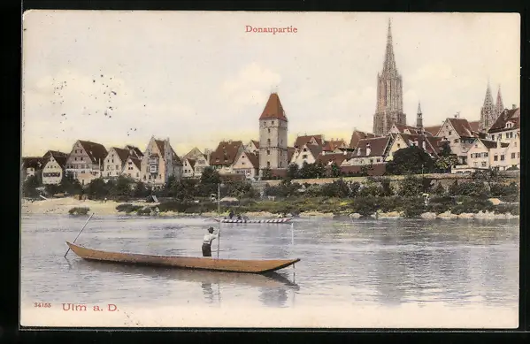 AK Ulm a. D., Donaupartie, Bootsfahrer