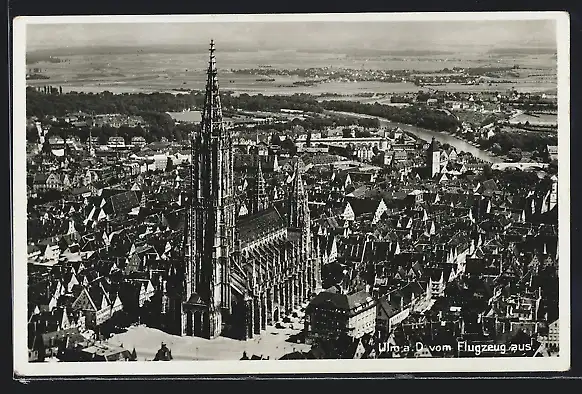AK Ulm a. D., Flugzeugaufnahme des Ortes