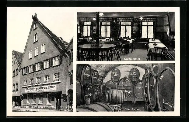 AK Ulm a. D., Gasthof zum schwarzen Adler, Frauenstr., Innen- und Aussenansicht
