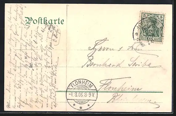 gelaufen 1906, Eckknick re. oben, guter Zustand