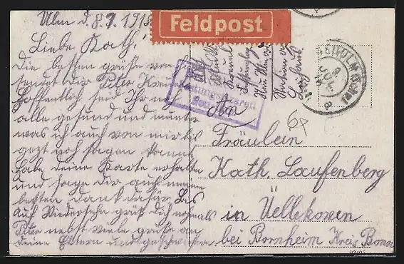 alte Ansichtskarte, gelaufen 1918, Eckknick unten re., guter Zustand