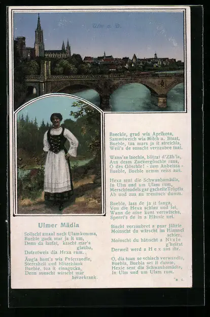 AK Ulm a. D., Münster, Teilansicht mit Münster und Brücke, Ulmer Mädle