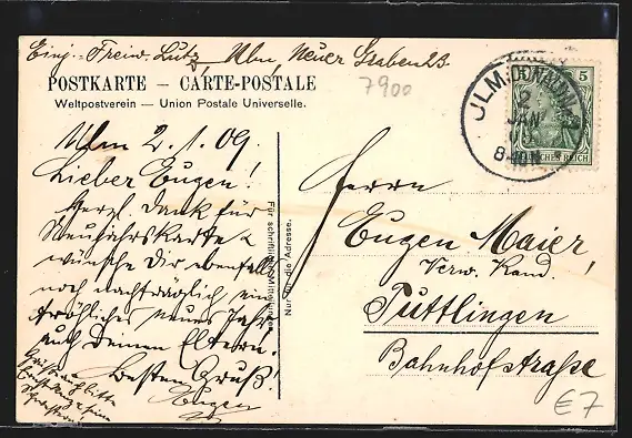 alte Ansichtskarte, gelaufen 1909, guter Zustand