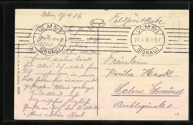 alte Ansichtskarte, gelaufen 1916 als Feldpost, guter Zustand