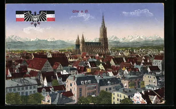 AK Ulm a. D., Ortsansicht mit Kirche, Wappen