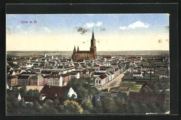AK Ulm a. D., Ortsansicht mit Kirche im Fokus
