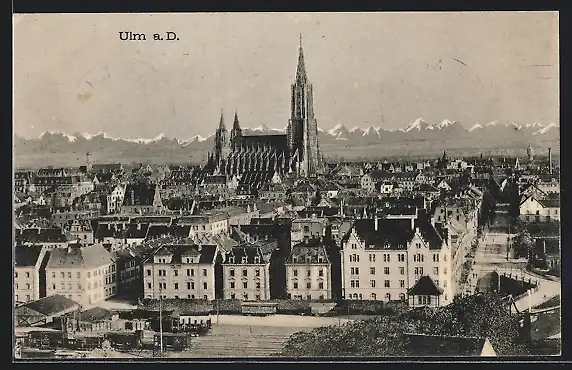 AK Ulm a. D., Ortsansicht mit Münster und Bergpanorama