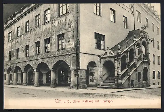 AK Ulm a. D., Partie am Rathaus mit Freitreppe
