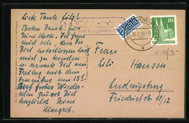 alte Ansichtskarte, gelaufen 1950, guter Zustand