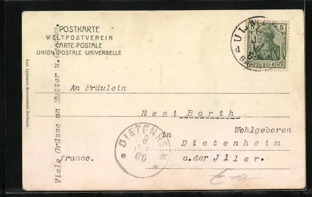 alte Ansichtskarte, gelaufen 1906, guter Zustand
