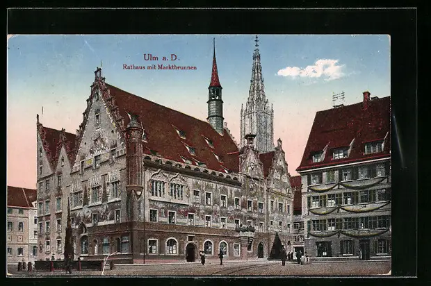 AK Ulm a. D., Rathaus mit Marktbrunnen