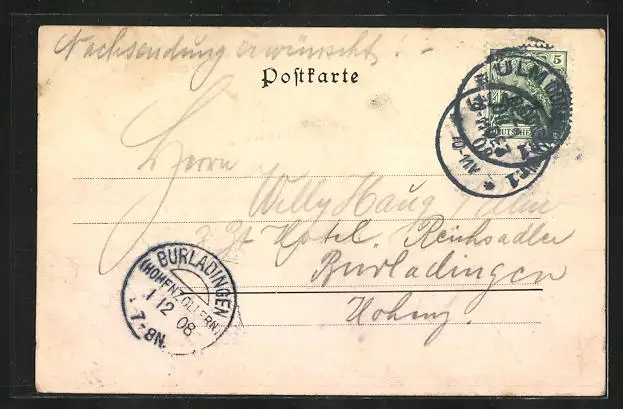 alte Ansichtskarte, gelaufen 1908, Eckknick re. unten, guter Zustand