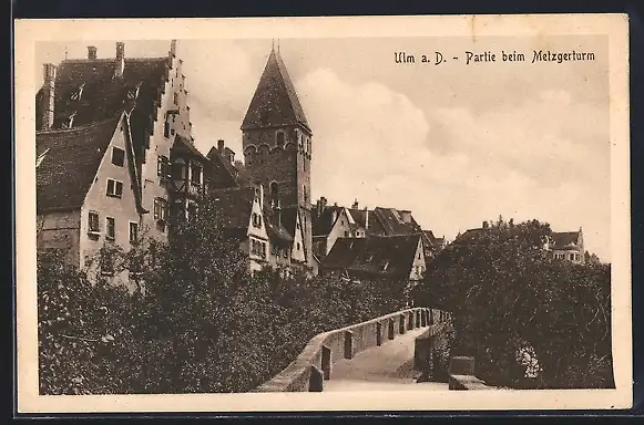 AK Ulm a. D., Strassenpartie beim Metzgerturm