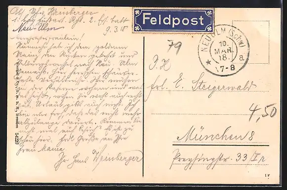 alte Ansichtskarte, gelaufen 1918, guter Zustand