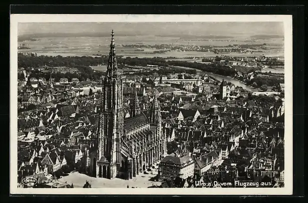 AK Ulm a. D., Teilansicht mit Dom, Fliegeraufnahme