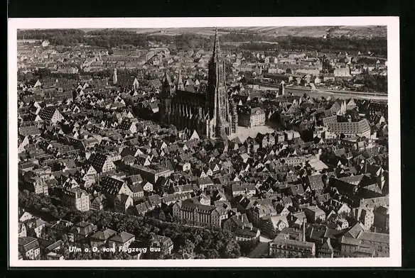 AK Ulm a. D., Teilansicht mit Kirche, Fliegeraufnahme