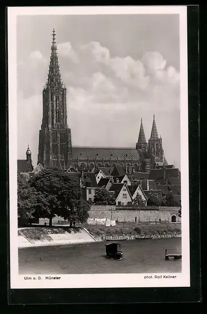 AK Ulm a. D., Teilansicht mit dem Münster vom Donauufer