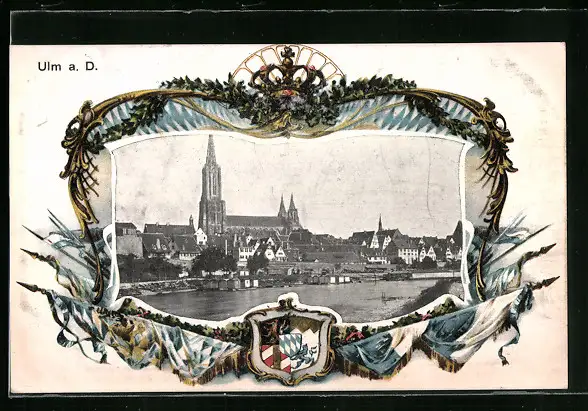 AK Ulm a. D., Totalansicht mit Dom von der Donau aus