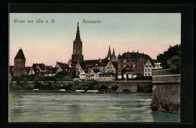 AK Ulm a. D., Uferpartie der Ortschaft