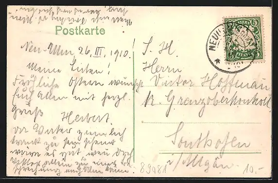 alte Ansichtskarte, gelaufen 1910, guter Zustand