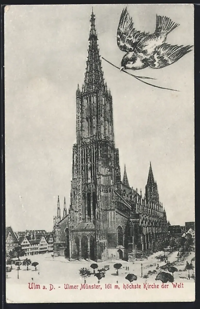AK Ulm a. D., Ulmer Münster mit Spatz