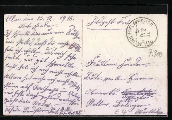 alte Ansichtskarte, gelaufen 1916, Bugspur oberer Rand, guter Zustand