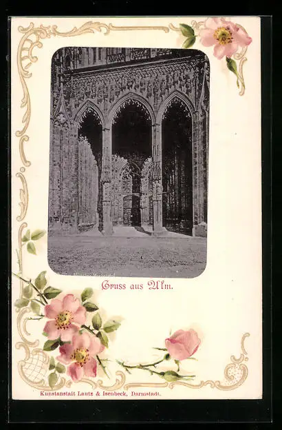 AK Ulm a. Donau, das Domportal, Blumenverzierungen