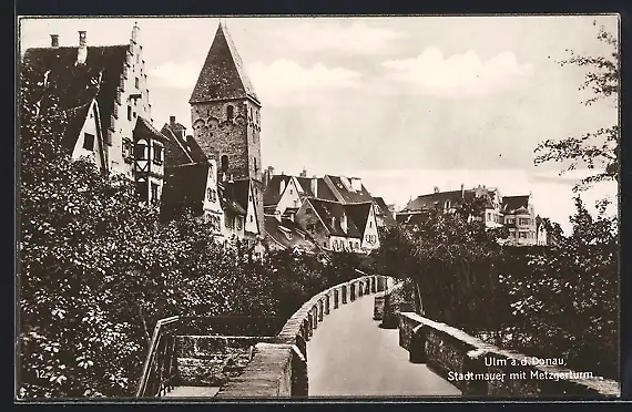 AK Ulm a. d. Donau, Stadtmauer mit Metzgerturm