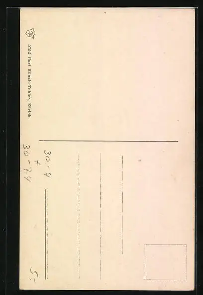 Personenbezogene Daten auf der Rückseite der Karte wurden durch blauen Textmarker unkenntlich gemacht. Die blauen Stellen sind auf die Vorderseite durchgeweicht und wirken sich negativ auf das Postkartenfoto aus