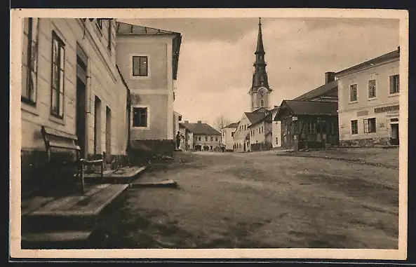 AK Ulrichsberg /O.-Ö., Strassenpartie mit Blick zur Kirche