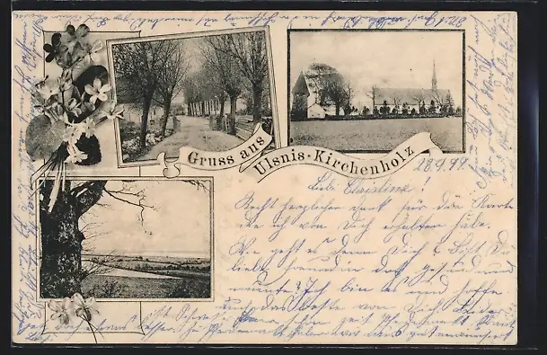AK Ulsnis-Kirchenholz, Strassenpartie, Ortsansicht mit Kirche, Panorama