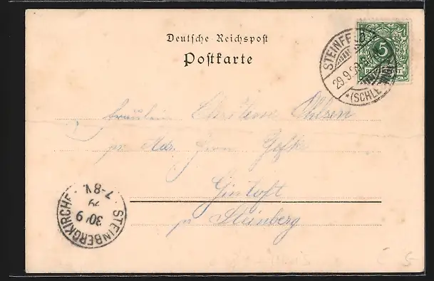 alte Ansichtskarte, gelaufen 1899, Bugspur mittig, guter Zustand
