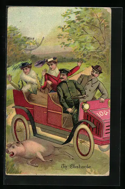 AK Un Obstacle, Auto fährt über ein Schwein